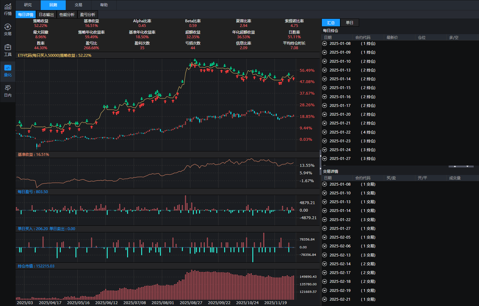 目前市场环境比较恶劣,没有一个良好的心态和过硬的风控是日益艰难,在这种复杂的环境下,还不如躺平做ETF, 既不会每天提心吊胆爆雷, 每年也有稳定不错的固定收益。本人写了一个类似的代码,如果你想购买作为你投资的参考, 请 从京东APP或者京东官网搜索:证券自动量化交易程序小店,购买前先咨询一下客服,别买错,非诚勿扰 。 注意:1.本代码仅供学习使用,风险自担。2.代码买以后终身可以免费使用,系统升级免费售后升级。3.下图为近今年以来回测收益,供参考。