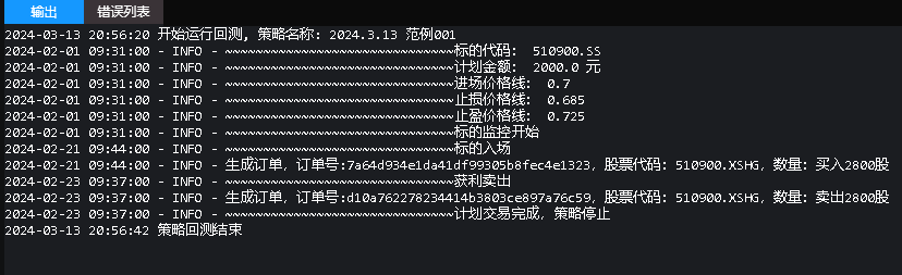 总结,这个策略虽然很小,但已经基本功能已经实现了,而且我估计实盘运行应该是是没什么大问题。编写过程中,我特意使用了 《Ptrade的3个小自定义函数范例》《 Ptrade中读取ini配置文件范例》 提及的一些范例,算是基于前几篇文章的实例化综合范例。